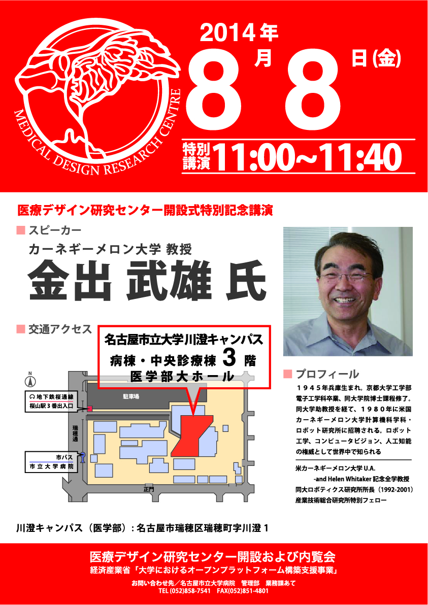 医療デザイン研究センター開設式特別記念講演 日時:2014年8月8日 11:00~11:40 クリックすると拡大されます。 2014.8/8-10 中部経済産業局主催の